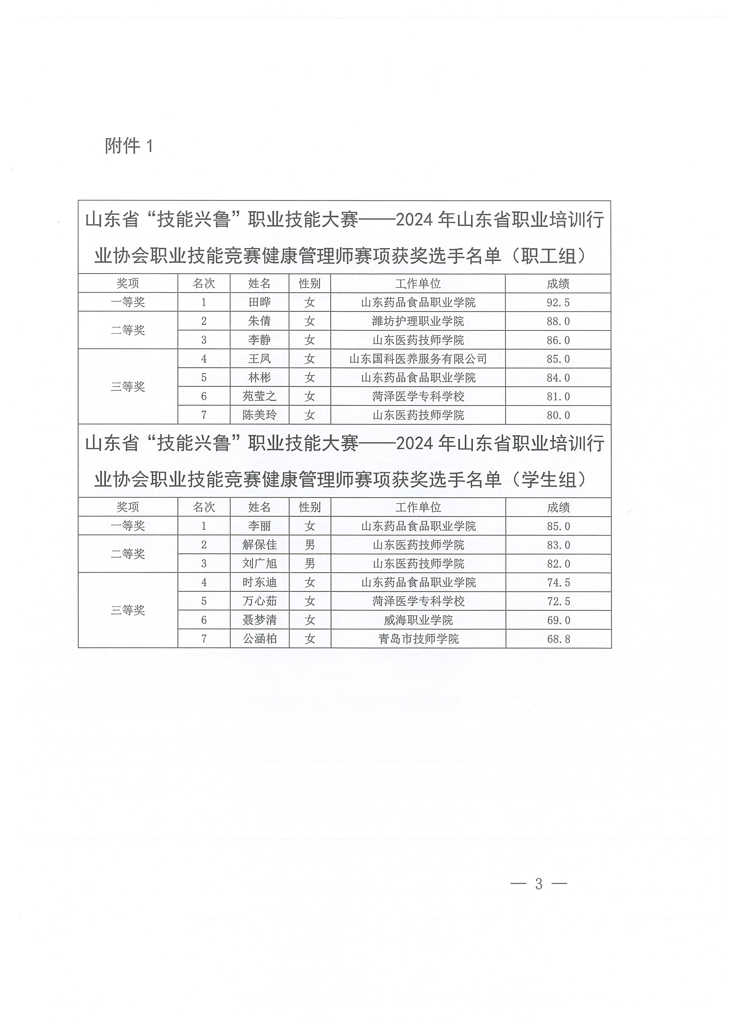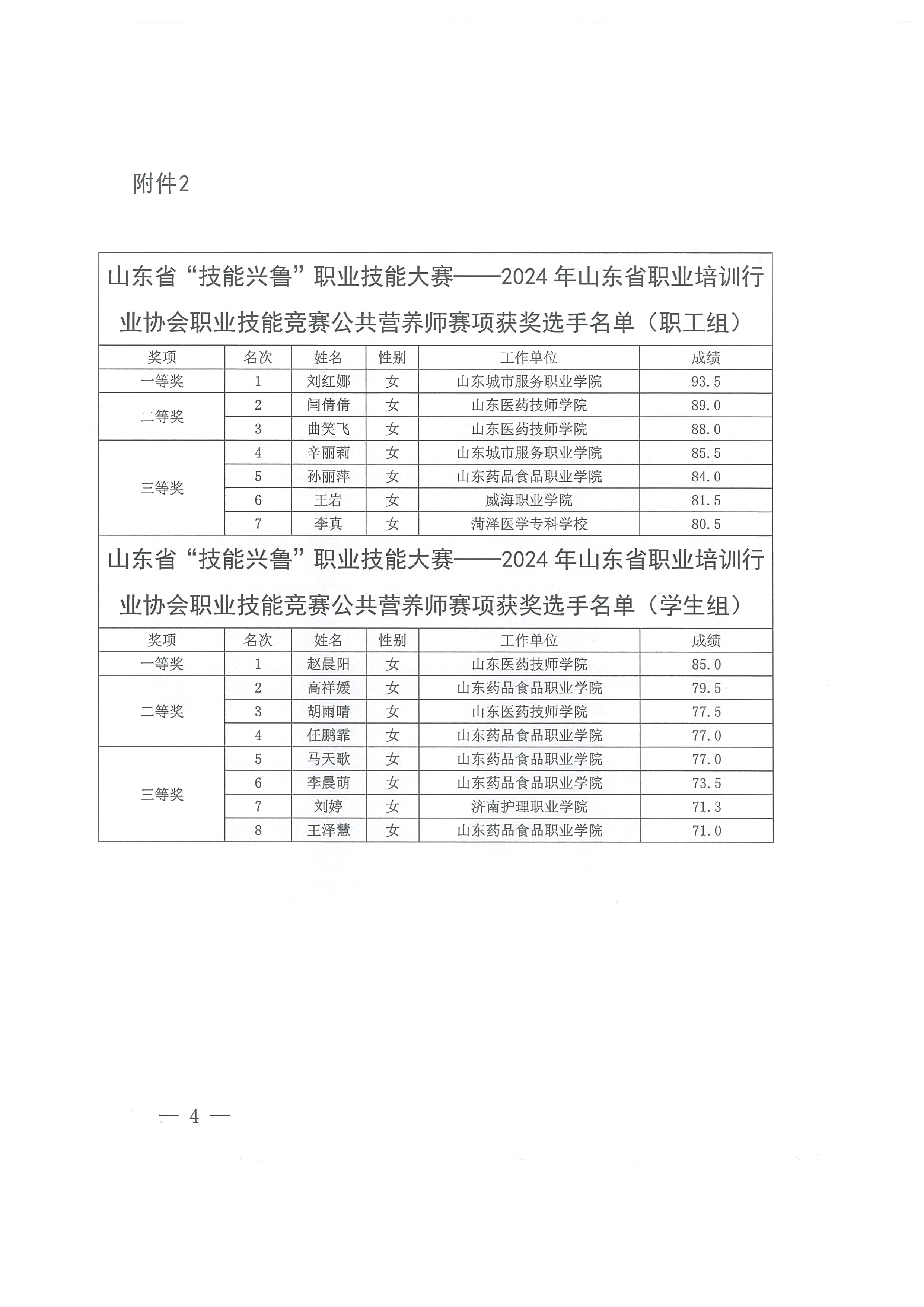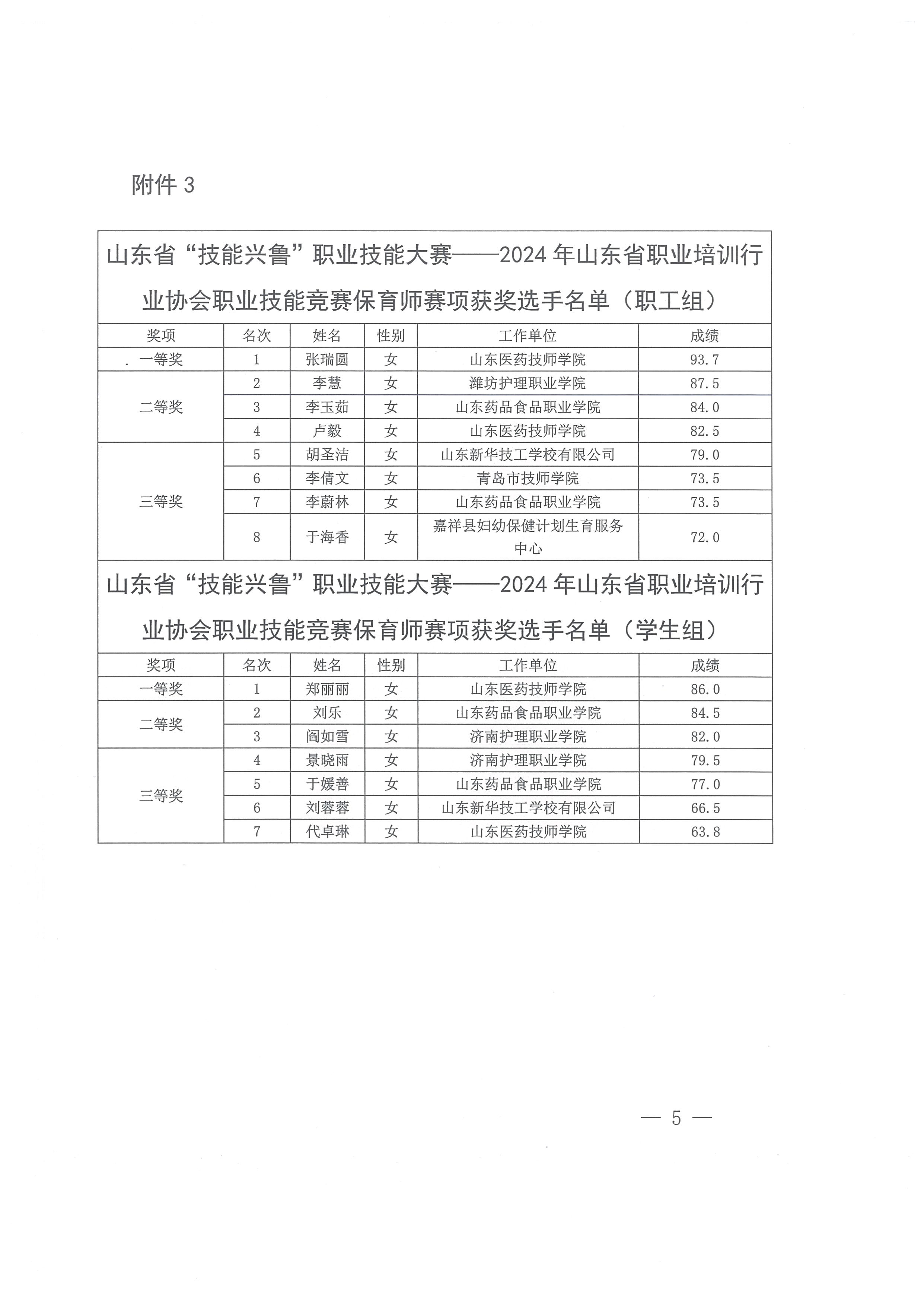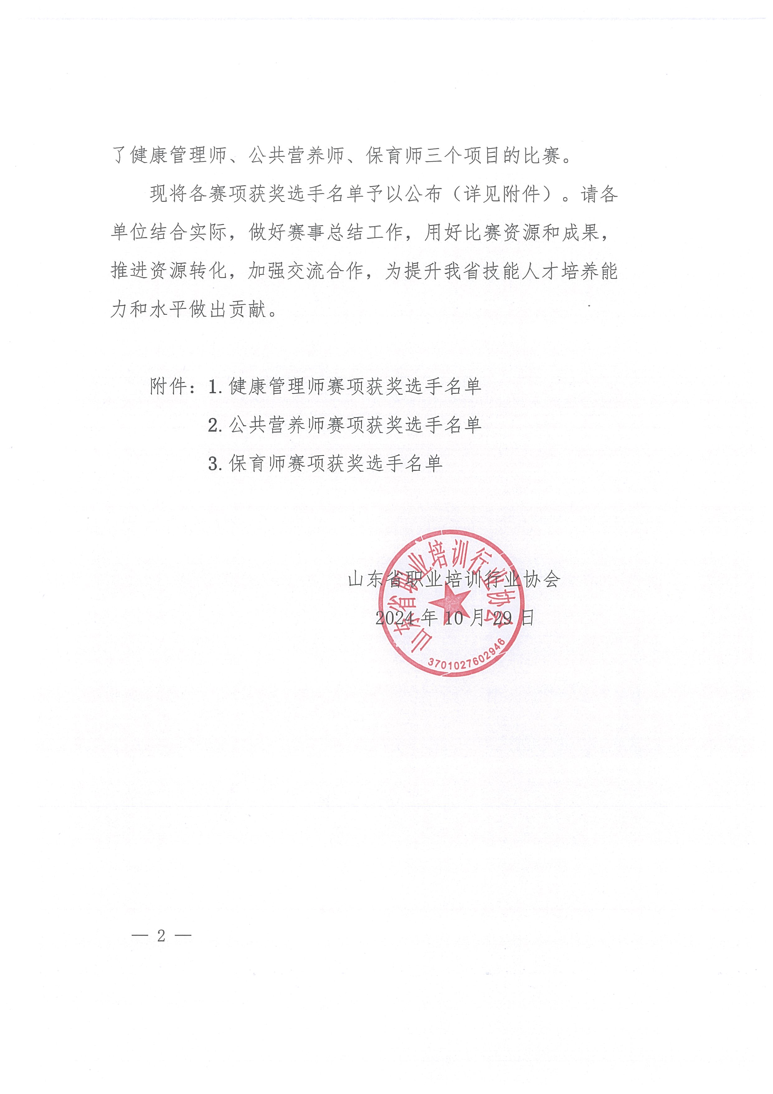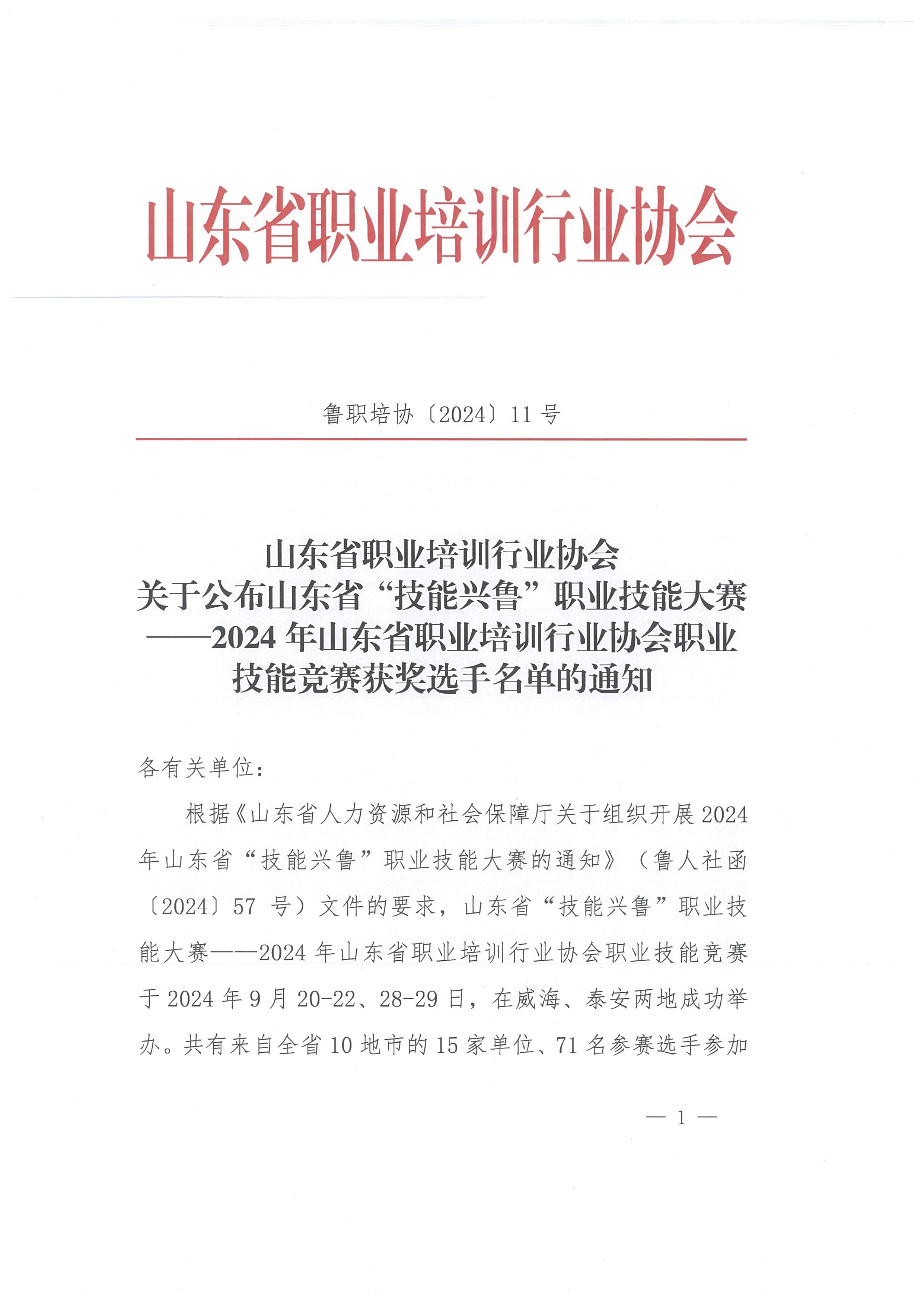 关于公布山东省“技能兴鲁”职业技能大赛——2024年山东省职业培训行业协会职业技能竞赛获奖选手名单的通知