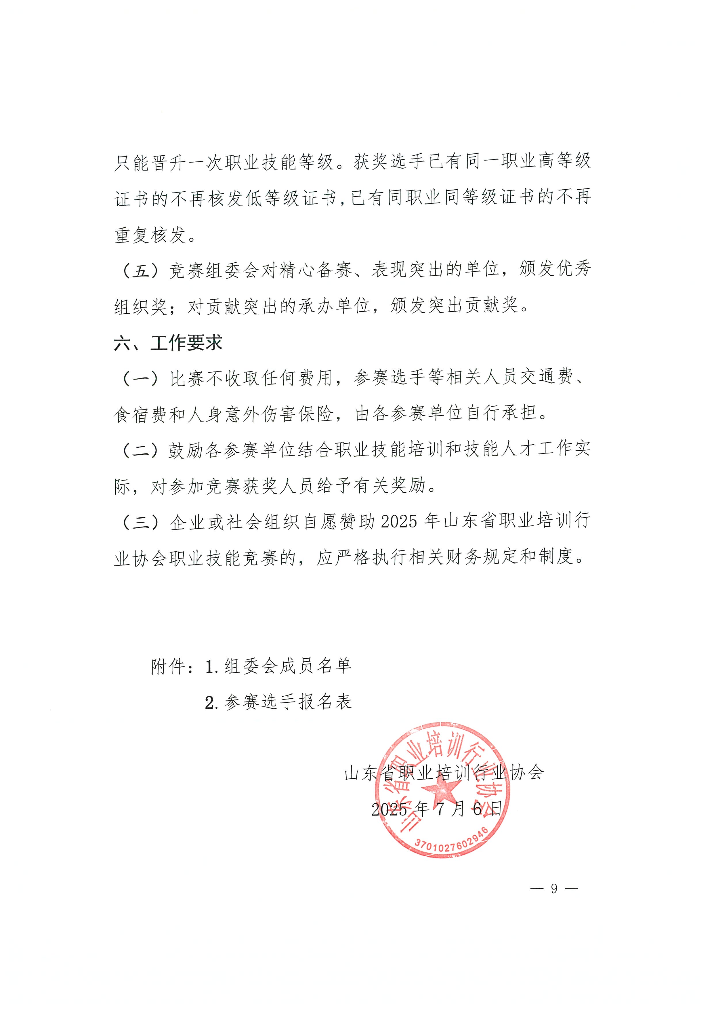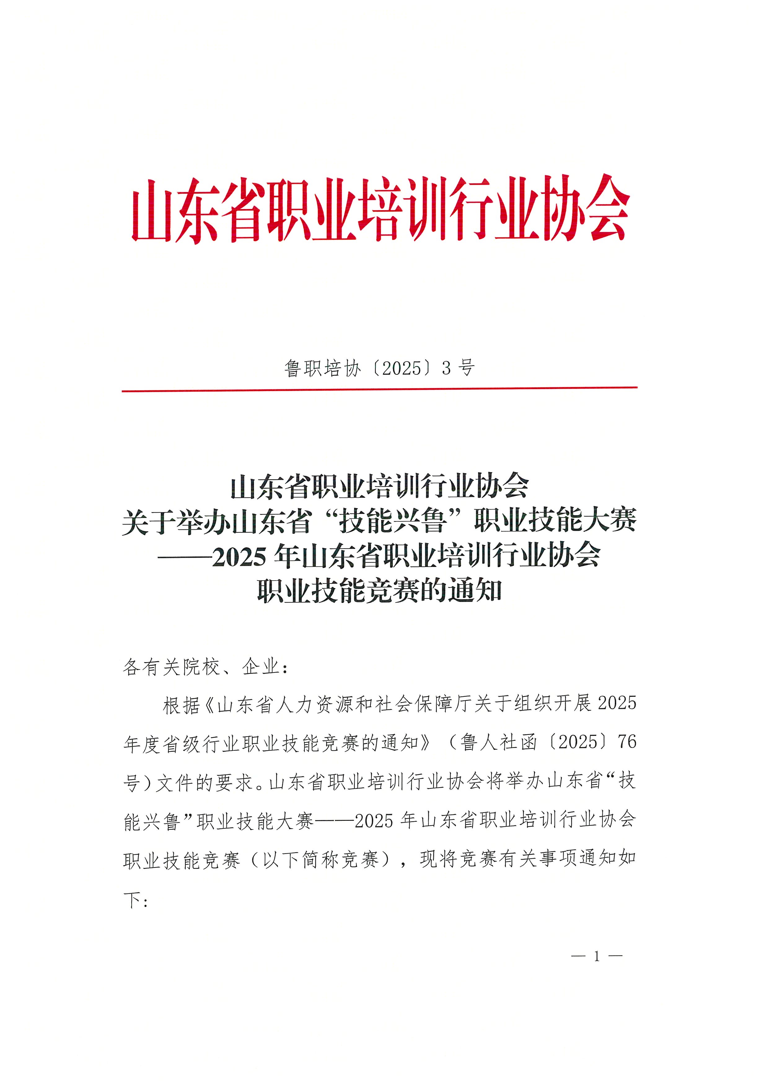 关于举办山东省“技能兴鲁”职业技能大赛——2025年山东省职业培训行业协会职业技能竞赛的通知