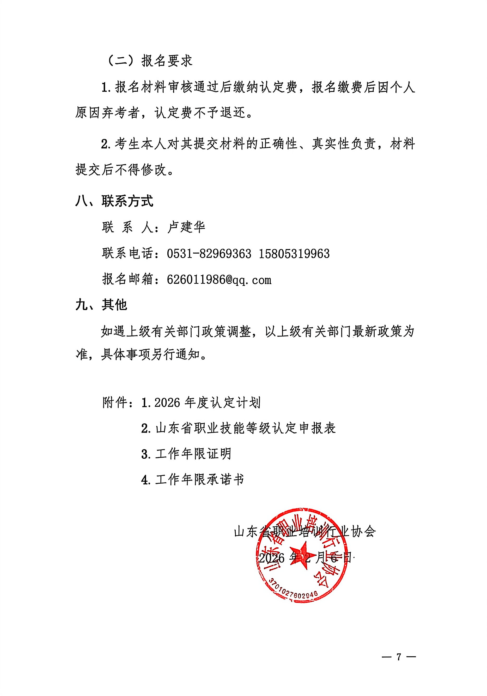 山东省职业培训行业协会2026年度职业技能等级认定计划公告