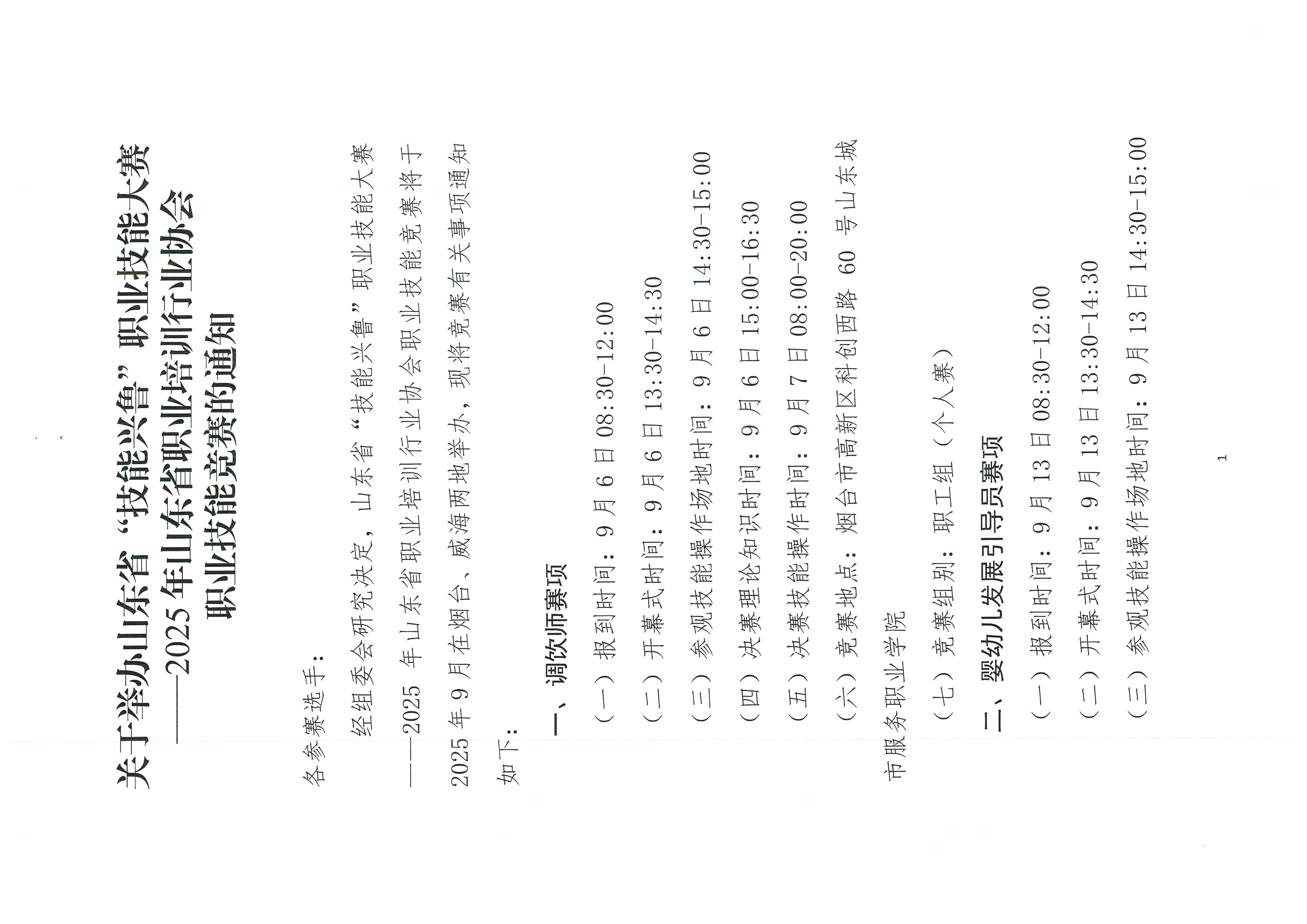 关于举办山东省“技能兴鲁”职业技能大赛——2025年山东省职业培训行业协会职业技能竞赛的通知