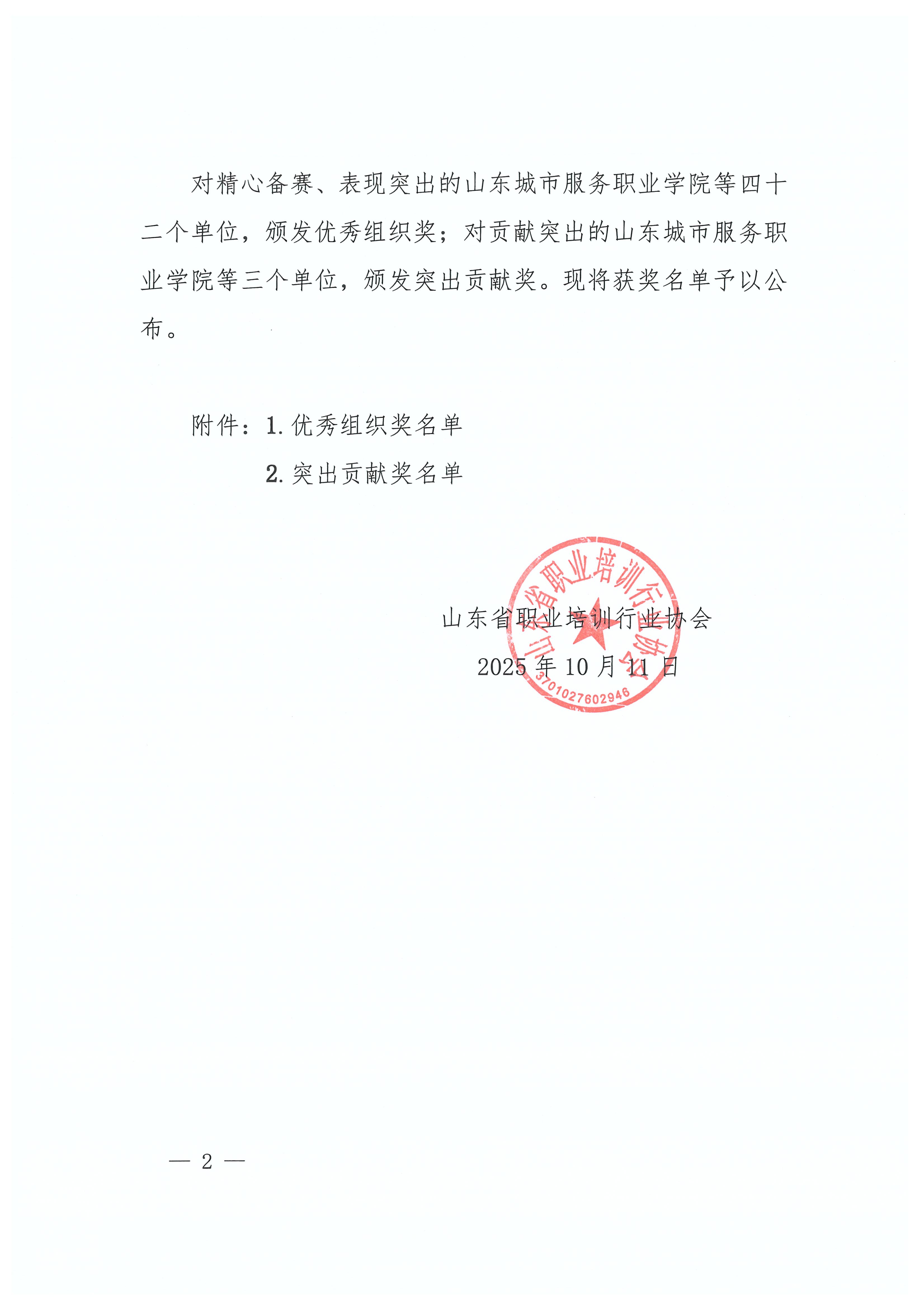 关于公布山东省“技能兴鲁”职业技能大赛——2025年山东省职业培训行业协会职业技能竞赛优秀组织奖和突出贡献奖的通知